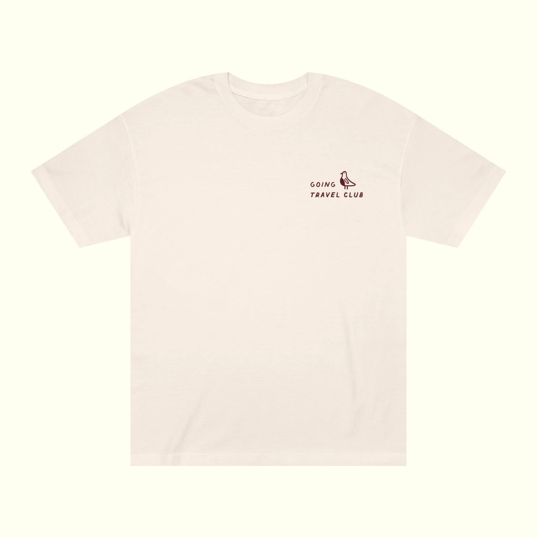 Going Cream Tee $35.00 Going Luggage Tag $15.00 Travel Club Cap $35.00 Travel Tote $20.00 Going Pet Bandana $20.00 Going Blue Tee $35.00 Going Blue Crew $60.00 Cream Going Crew $50.00